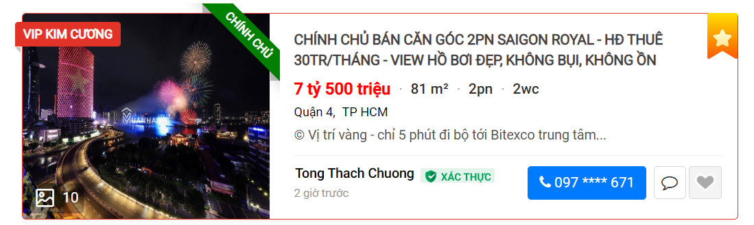- TIÊU ĐỀ IN HOA, Hiển thị sau tin VIP KIM CƯƠNG, VIP VÀNG, VIP BẠC và trên các tin khác. Hiển thị nhãn nỗi bật và khung riêng cho loại VIP ĐỒNG